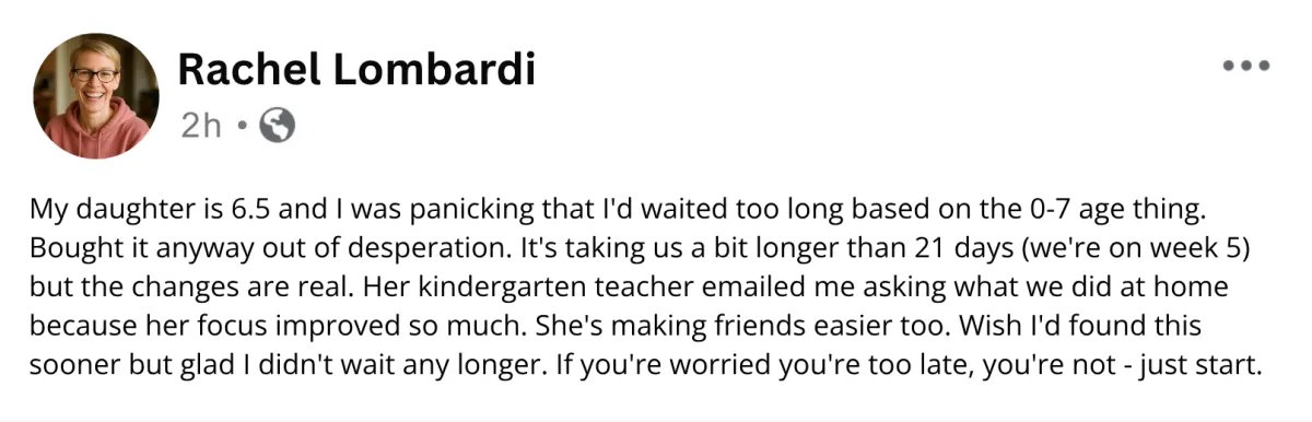 Together, we refined, tested, and perfected a system that works WITH your child's developing brain instead of against it.